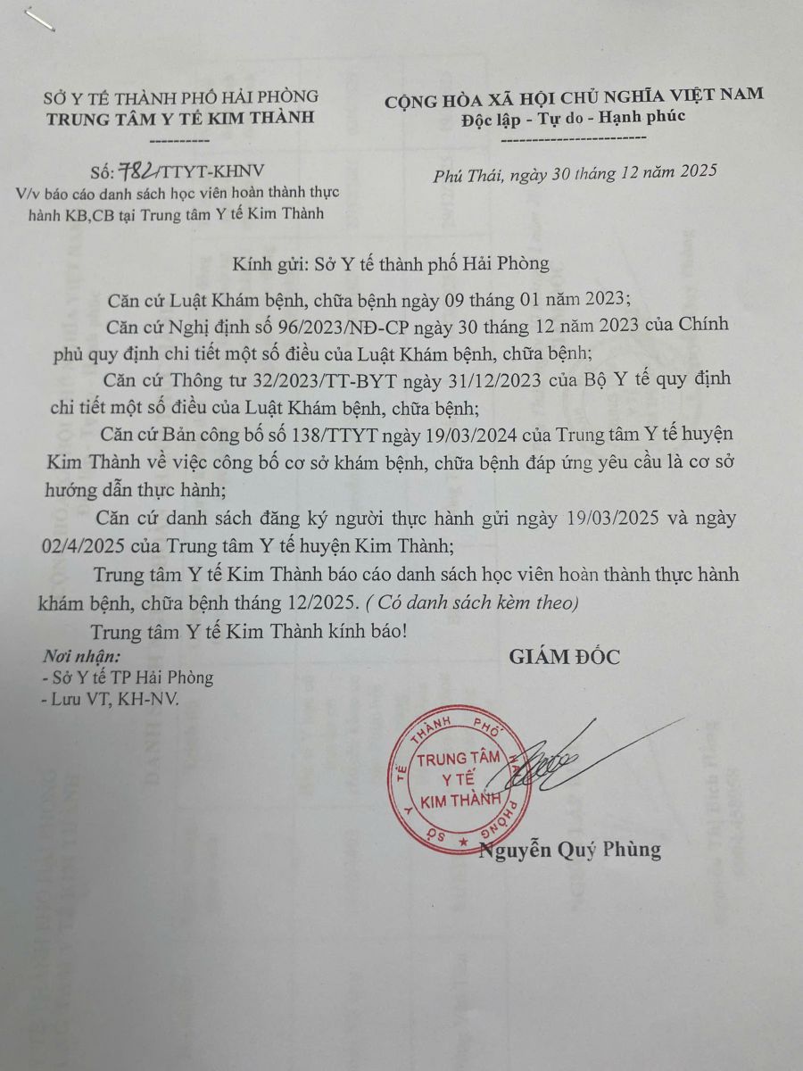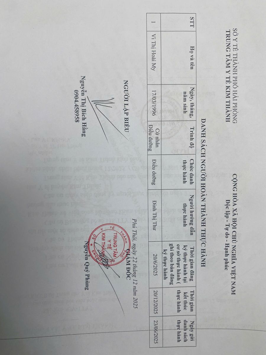 Ds người hoàn thành thực hành tháng 12