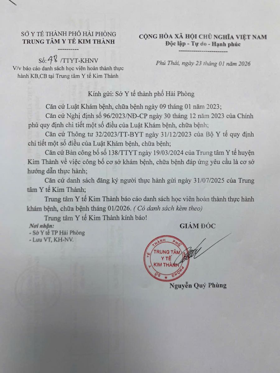 Ds hoàn thành thực hành KCB tháng 1.2026